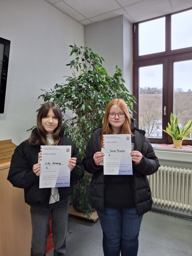 Jährlich findet für alle hessischen Schülerinnen und Schüler der Jahrgangsstufe 8 ein Wettbewerb im Fach Mathematik statt. Unter allen Teilnehmern der Alteburg-Schule setzte sich Lilly Amberg mit 46 von 48 Punkten, gefolgt von den punktgleichen Schülerinnen Amy Stock und Anna Strieder im Realschulbereich durch. Sarah Priester (44 von 48 Punkte) war in der Hauptschule die […]