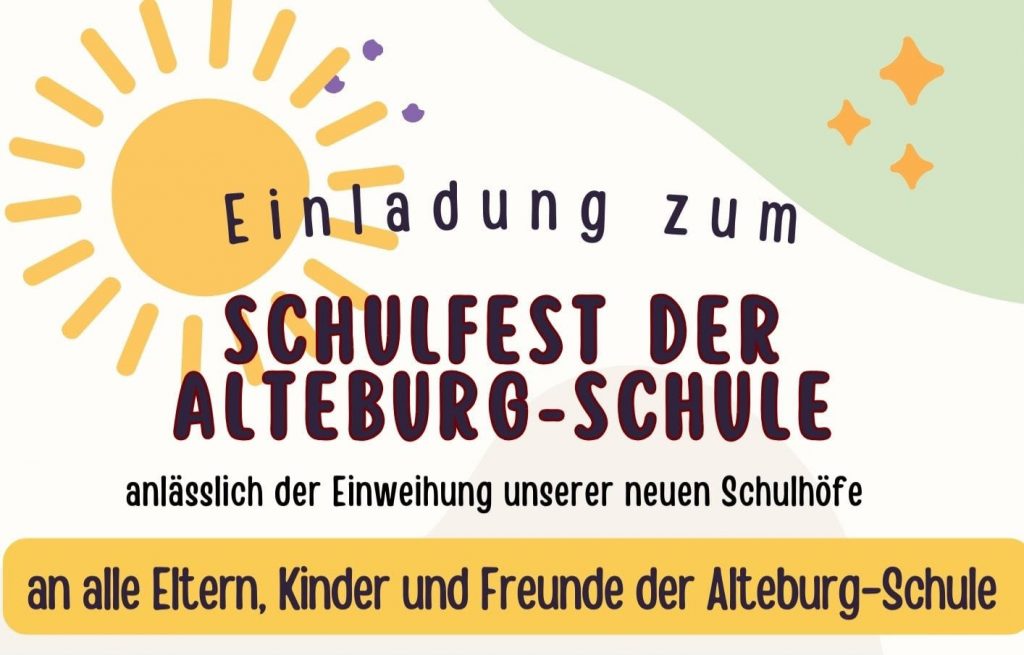 Anlässlich der Einweihung unserer neuen Schulhöfe lädt die Alteburg-Schule Sie alle herzlich zum diesjährigen Schulfest ein. WIR FREUEN UNS AUF SIE.
